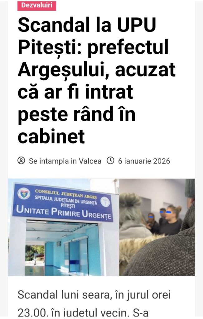 Conform „știri pe surse”, prefecta Făcăleață a fost protagonista unui scandal la Urgența Spitalul Județean Argeș.